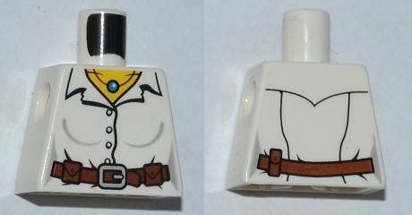 Torso Female Shirt with Collar and Buttons, Reddish Brown Belt with Pouches and Buckle, Necklace with Blue Bead, Yellow Neck Pattern / White Arms / Yellow Hands |