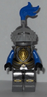 Minifigure, Shield Triangular Short with Black and Gold Lion Head with Crown on Blue and White Background Pattern |