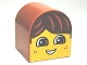 Duplo, Brick 2 x 2 x 2 Slope Curved Double with Yellow Boy Face, Dark Brown Hair, Open Mouth Smile with Teeth, Freckles Pattern |