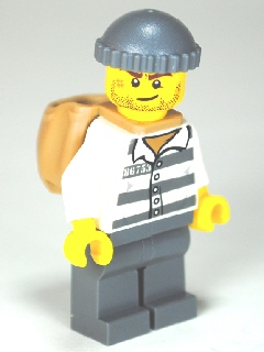 Police - Jail Prisoner 86753 Prison Stripes, Dark Bluish Gray Knit Cap, Backpack, Crooked Smile and Scar |