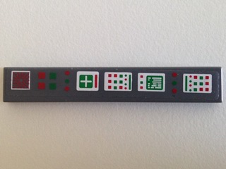 Tile 1 x 2 with Red 82, Yellow and White Gauges Pattern |