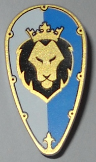Minifigure, Shield Oval with Gold and Black Border and Lion Head on White and Blue Background Pattern |