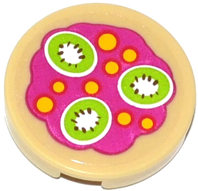 Tile, Round 2 x 2 with Bottom Stud Holder with Magenta and Bright Pink Life Preserver, Curved Bands Pattern |
