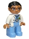 Duplo Figure Lego Ville, Male, Black Legs, Medium Blue Shirt with Pocket, Medium Blue Arms, Brown Head, Glasses, Black Hair, Oval Eyes |