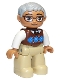 Duplo Figure Lego Ville, Male, Tan Legs, Reddish Brown Argyle Sweater Vest, White Arms, Light Bluish Gray Hair, Glasses, Oval Eyes |