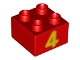 Duplo, Brick 2 x 2 with Number 4 Bright Light Orange Pattern |
