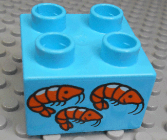 Duplo, Brick 2 x 2 with 3 Orange Shrimp Pattern |