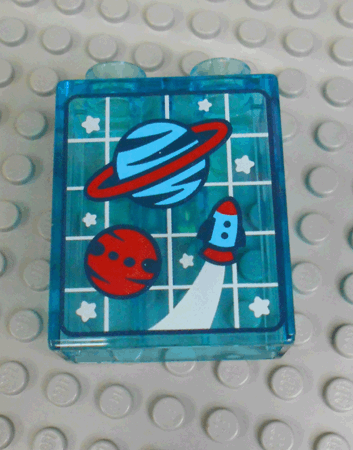 Duplo, Brick 1 x 2 x 2 with Planets, Stars and Spaceship on White Grid Pattern |