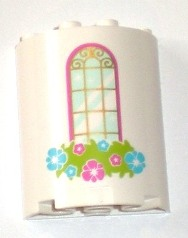 Cylinder Half 2 x 4 x 4 with Window and Flower Box Pattern |