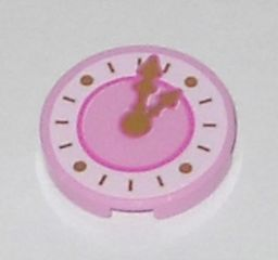 Tile, Round 2 x 2 with Bottom Stud Holder with Dark Pink Clock with Gold Hands Pattern |
