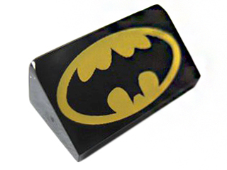 Slope 30 1 x 2 x 2/3 with Yellow Batman Logo Pattern (Head Facing Short End of Slope) |