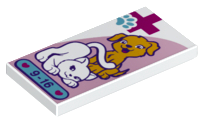 Tile 2 x 4 with Hospital Magenta Cross, Medium Azure Animal Paw, Bright Light Orange Dog, White Cat, and '9-16' Pattern |