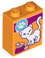 Brick 1 x 2 x 2 with Inside Stud Holder with White Cat and Paw Print Cat Food Box Pattern |
