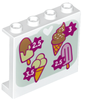 Panel 1 x 4 x 3 with Side Supports - Hollow Studs with Sign with 4 Ice Cream Cones and Prices Pattern |