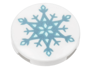Tile, Round 2 x 2 with Bottom Stud Holder with Metallic Light Blue Snowflake Pattern |