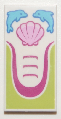Tile 2 x 4 with Dolphins and Scallop Seashell Pattern |