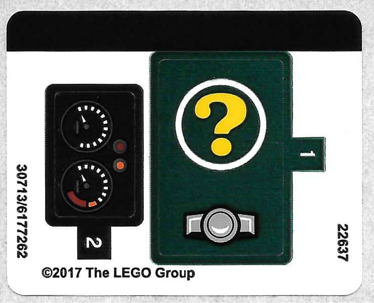 30350bpb041 Tile, Modified 2 x 3 with 2 Clips with Yellow Question Mark in White Circle and Hood Ornament Pattern (Sticker) - Set 70903 1 Dark Green Non Non Oui