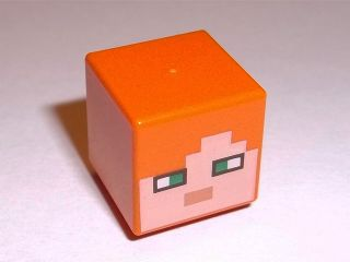 Minifigure, Head, Modified Cube with Pixelated Dark Green Eyes and Mouth Pattern (Minecraft Slime) |