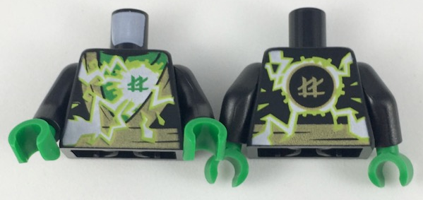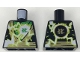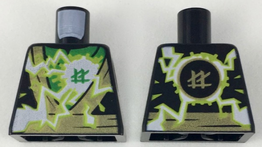 Tile, Round 2 x 2 with Bottom Stud Holder with Black Circular Lines and Gold Squares on Green Background, Ninjago Logogram 'LL' Pattern |