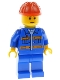 Tile 2 x 4 with Exclamation Mark in Warning Triangle and Minifigure Head with Construction Helmet Pattern |