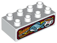 Duplo, Brick 2 x 4 with Sandwich, Fish and Coffee Cup Pattern |