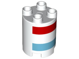 Duplo, Brick Round 2 x 2 x 2 with Red and Medium Azure Stripes Pattern |