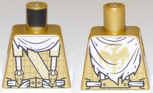 Tile, Round 2 x 2 with Bottom Stud Holder with White Dragon and Gold Decorative Lines Pattern |