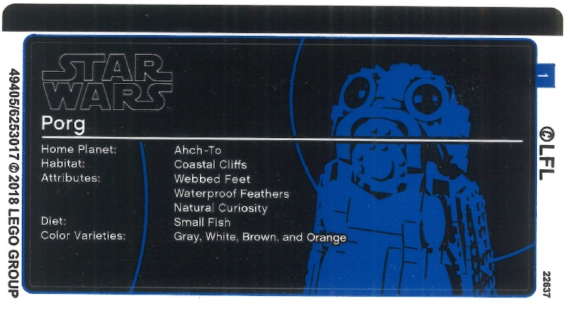 Brick, Round 1 1/2 x 1 1/2 x 2/3 Dome Top with Porg Head, V-Shaped between Eyes Pattern |