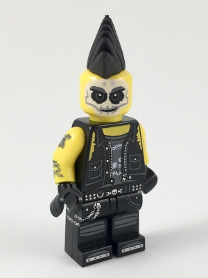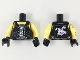 Torso Tattered Vest Open with Pockets, Zipper, Buttons, and White Sons of Garmadon (SOG) Logo on Back over Dark Bluish Gray Tank Top with Skull, Yellow Neck and Shoulders Pattern / Yellow Arm Left / Yellow Arm Right with Dark Bluish Gray Sons of Garmadon (SOG) Tattoo and Chains Pattern / Black Hands |