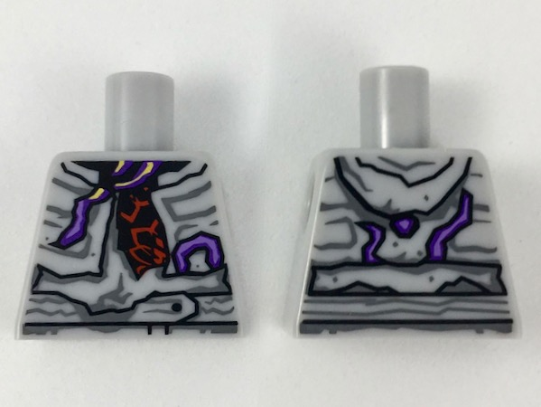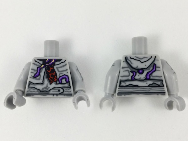 Torso Hoodie Tattered with Dark Bluish Gray Markings over Black and Red Shirt, Dark Purple and Medium Lavender Cracks Pattern / Light Bluish Gray Arms with Dark Bluish Gray Cracks Pattern / Light Bluish Gray Hands |
