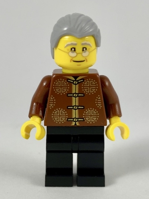 Tile 1 x 2 with Tan Chopsticks on Stand, White Chinese Soup Spoon with Gold Flower Pattern |