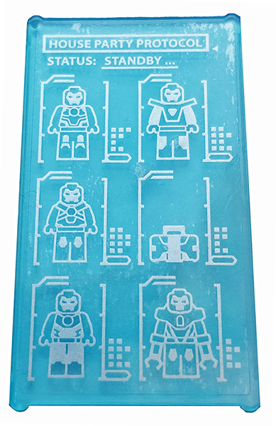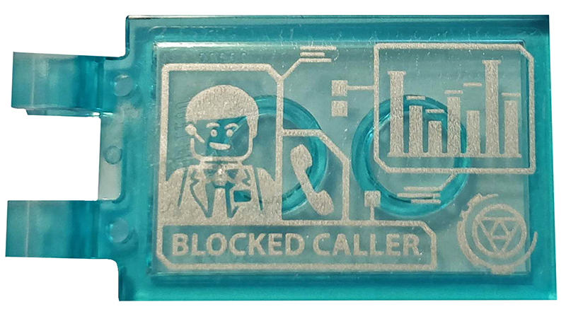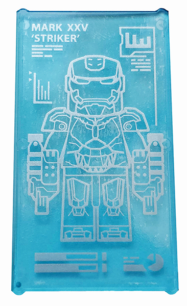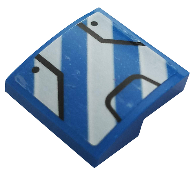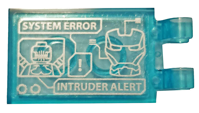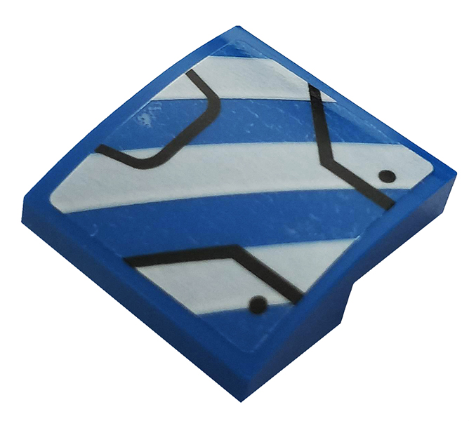 Tile 1 x 2 with Blue Trapezoid, Dark Bluish Gray Lines and Metallic Light Blue Eyes Pattern (Iron Man Mark 38 Forehead) |