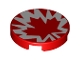 Tile, Round 2 x 2 with Bottom Stud Holder with Red and White Maple Leaf Pattern |