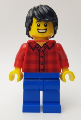 Dragon Boat Race Spectator - Male, Red Plaid Flannel Shirt, Blue Legs, Black Tousled Hair |