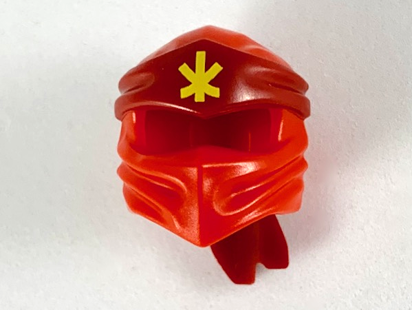 Minifigure, Headgear Ninjago Wrap Type 4 with Molded Dark Red Headband and Printed Yellow Ninjago Logogram Letter K Pattern |