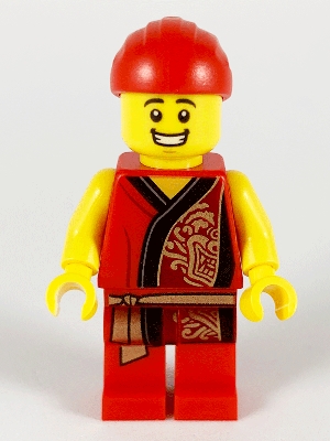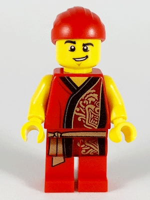 Brick, Round 2 x 2 Sphere with Stud / Robot Body with Dragon Dance Pearl, Gold Fringe and Dark Red Dots Pattern |