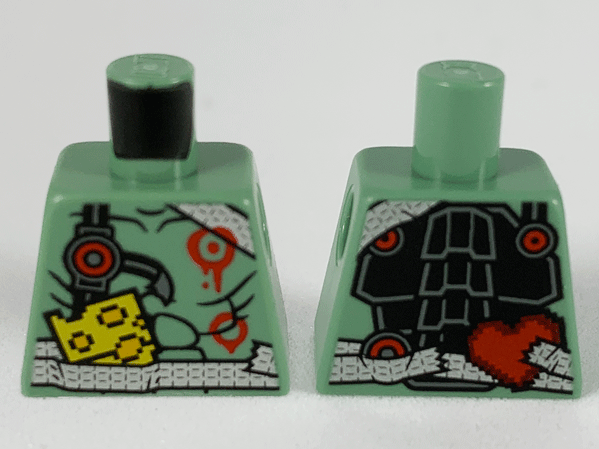 Minifigure, Utensil Gameplayer Label with Pixelated Black Skull and Broken Stripe / Health Bar Pattern |