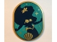 Tile, Round 6 x 8 Oval with Dark Blue Ariel Silhouette with Flower and Shell Bra, Gold Dots and Sparkles on Dark Turquoise Background Pattern |