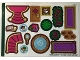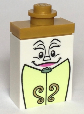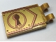 Tile, Modified 2 x 3 with 2 Clips with Reddish Brown Keyhole on Copper and Gold Clasp Pattern |