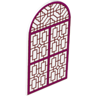 Glass for Door Frame 1 x 6 x 7 Arched with Notches and Rounded Pillars with Dark Pink Panes and Ornate Lines Pattern |