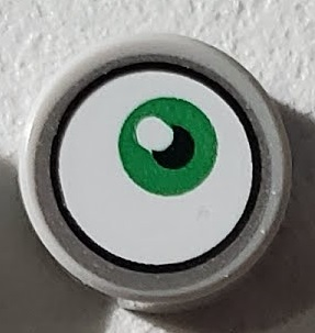 Tile, Round 2 x 2 with Bottom Stud Holder with Black Pupil and White Glint Pattern |