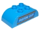 Duplo, Brick 2 x 4 Slope Curved Double with White 'PISTON CUP' on Blue, Red, and Yellow Striped Parallelogram Pattern |
