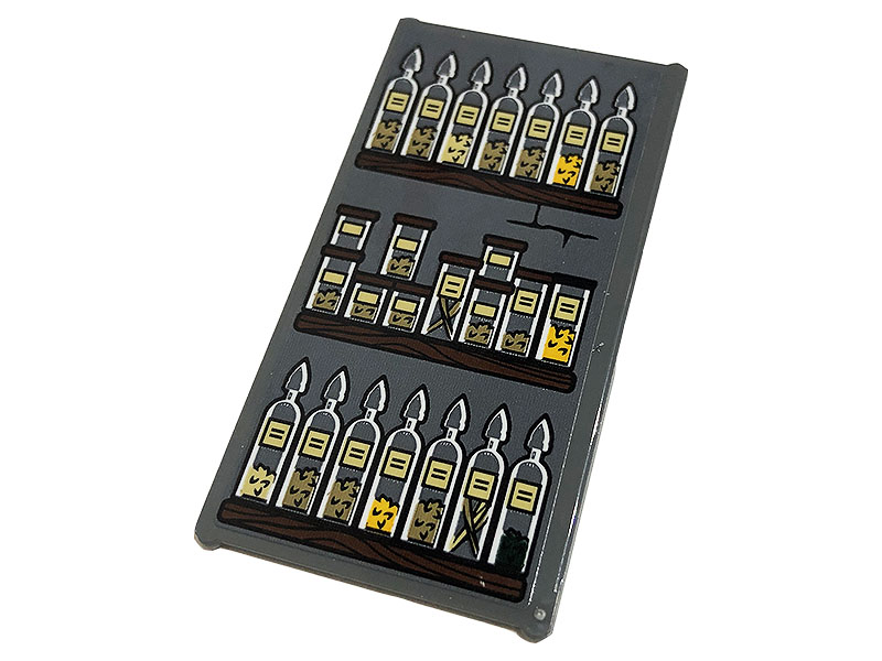 Tile 1 x 2 with Dark Brown Text, Dark Orange Cauldron, and Dark Tan Spell Ingredients Pattern |