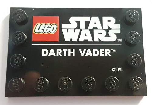 Tile, Modified 4 x 6 with Studs on Edges with Star Wars Logo and 'DARTH VADER' Pattern |