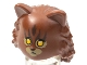 Minifigure, Headgear Head Cover, Cat with Mid-Length Hair in Back with Yellow Eyes, Tan Muzzle and Eye Patches, Dark Brown Stripes Pattern |