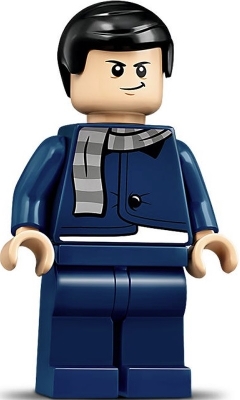 Torso Jacket with Black Button, Light Bluish Gray and Dark Bluish Gray Striped Scarf Pattern / Dark Blue Arms / Light Nougat Hands |