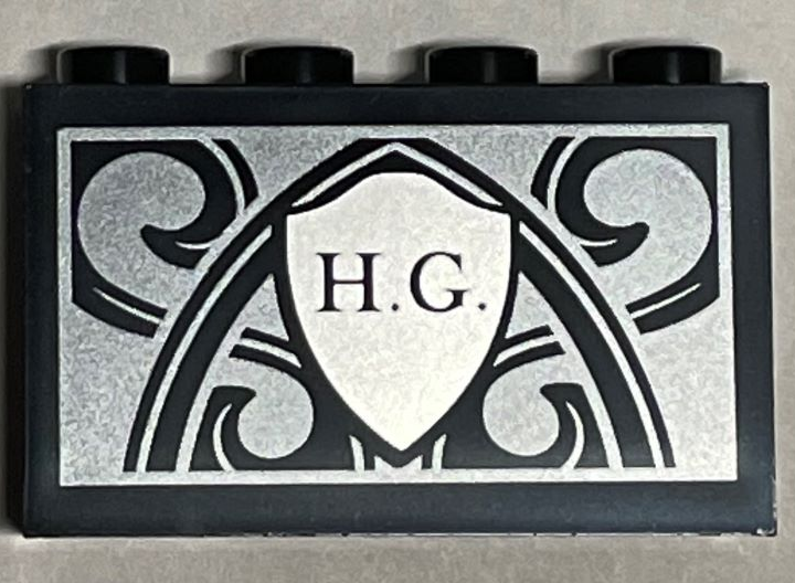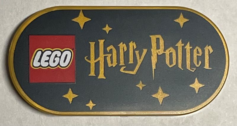 Tile, Round 2 x 4 Oval with LEGO Logo, 'Harry Potter', and Stars on Black Background Pattern |