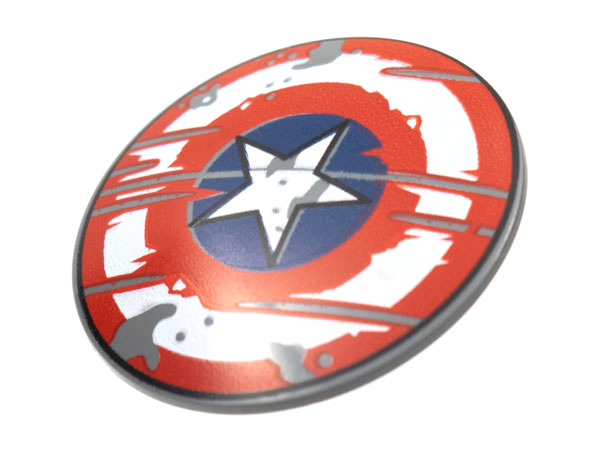 75902pb21 | Minifigure, Shield Circular / Round Convex Face with Red and White Concentric Rings, Star in Dark Blue Circle, Scratched and Weathered Pattern (Captain America) | 1 | Dark Bluish Gray | Non | Non | Non | |