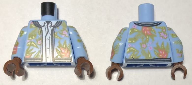 Torso Jacket, Floral Print over White Button Down Shirt Pattern / Bright Light Blue Arms with Floral Pattern / Reddish Brown Hands |