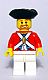 Torso Pirate Captain Jacket Open with Gold Trim and Red Pockets over Red Shirt, White Ascot Pattern / Black Arms / Pearl Gold Hook Left / Yellow Hand Right |